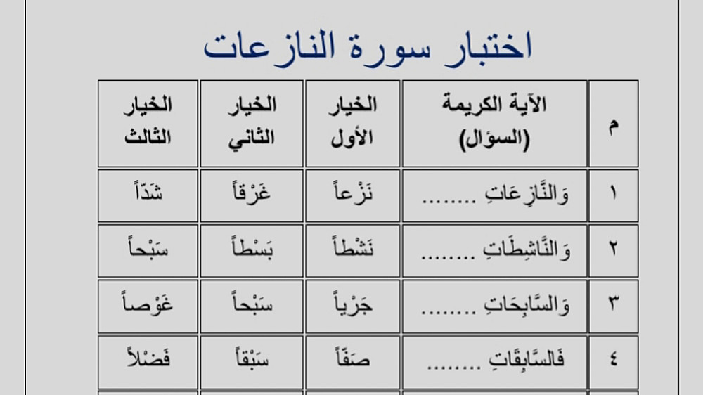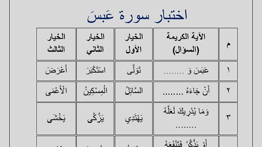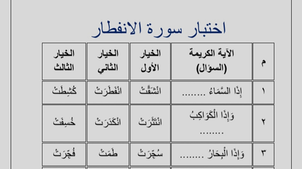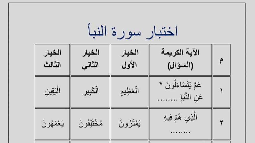 اختبارات لجميع سور الجزء الثلاثين