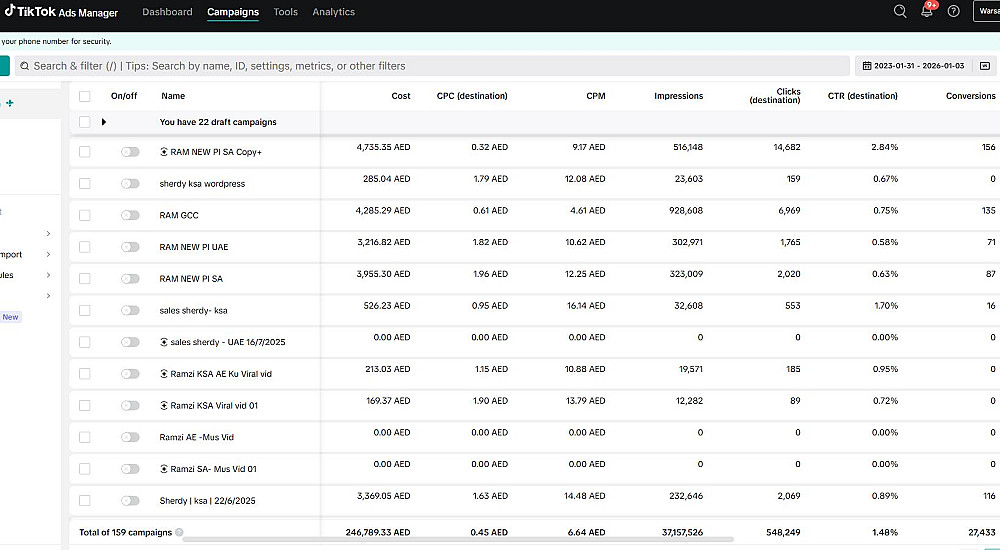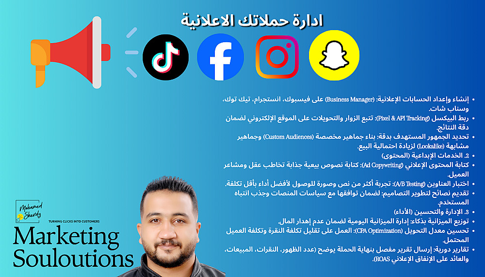 إدارة حملات إعلانية احترافية على فيسبوك، انستجرام، وتيك توك.