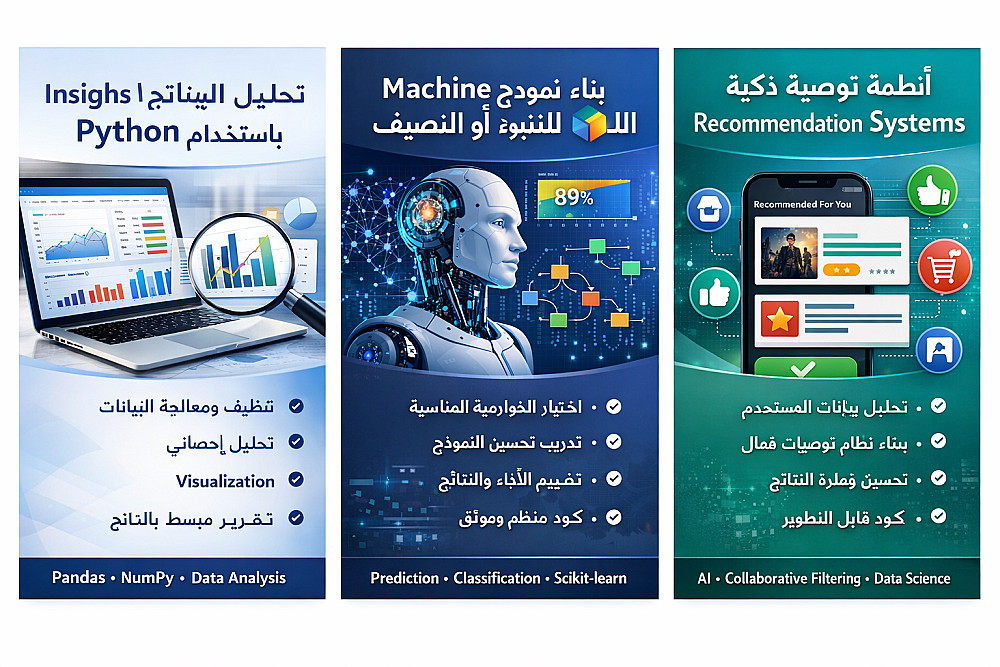 إنشاء نظام توصية ذكي يقترح منتجات أو أفلام أو محتوى مناسب للمستخدم بناءً على سلوكه وبياناته، باستخدام تقنيات Content-Based وCollaborative Filtering.