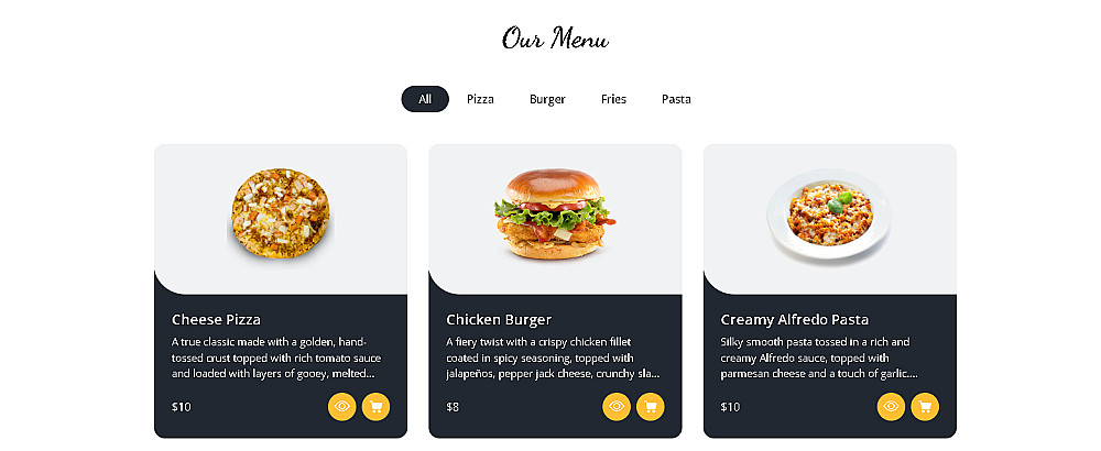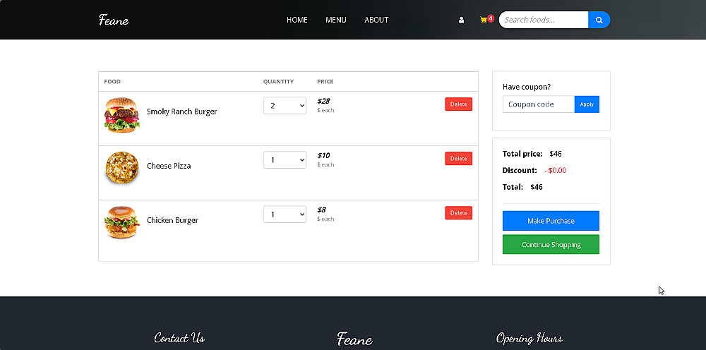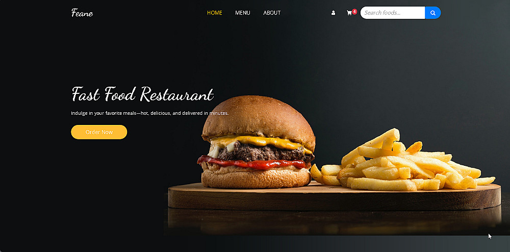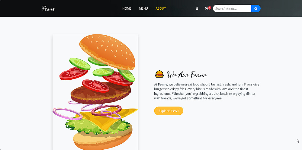 واجهة المستخدم (menu - about - cart - hero header)