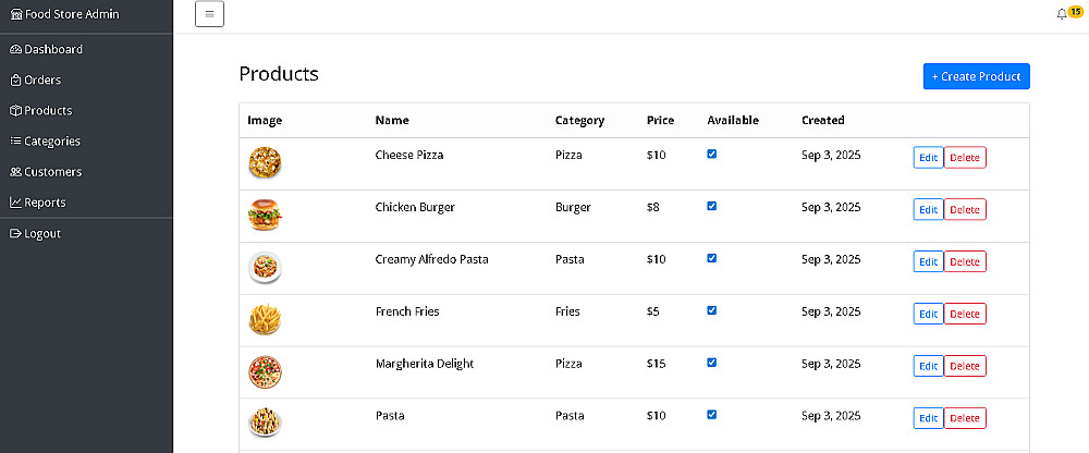 Food Store هو حل ويب متكامل لإدارة وطلب الطعام أونلاين، مصمم لتقديم تجربة استخدام سلسة وآمنة لكلٍ من العملاء وأصحاب المتاجر، مع أداء عالي وقابلية توسّع مستقبلية.
