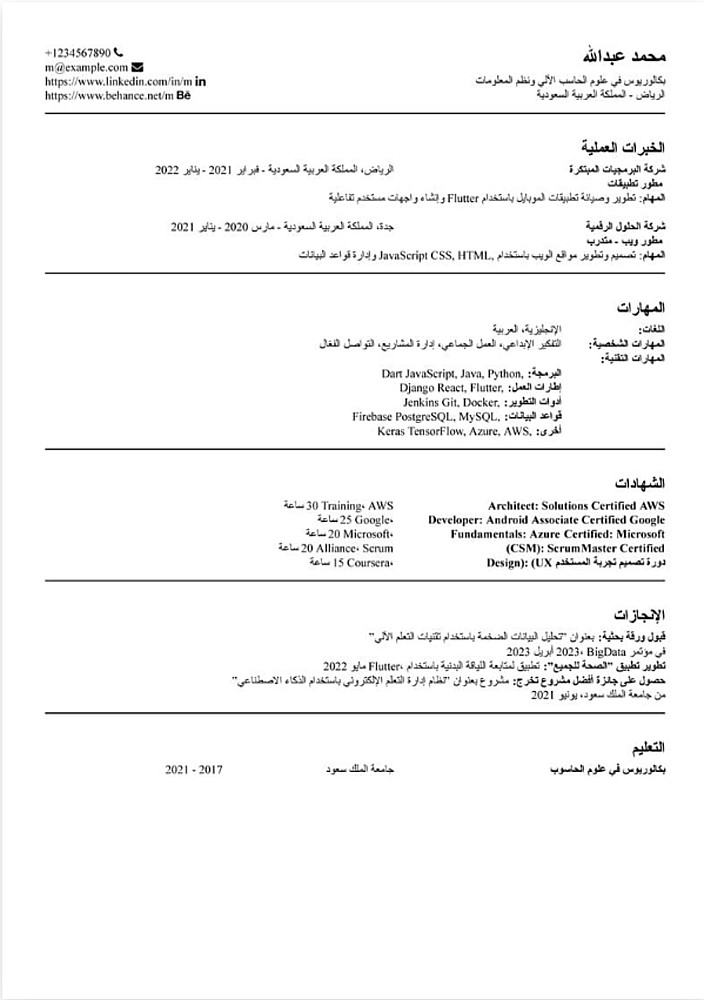 متوافق مع نظام ATS (مقبول في شركات التوظيف)