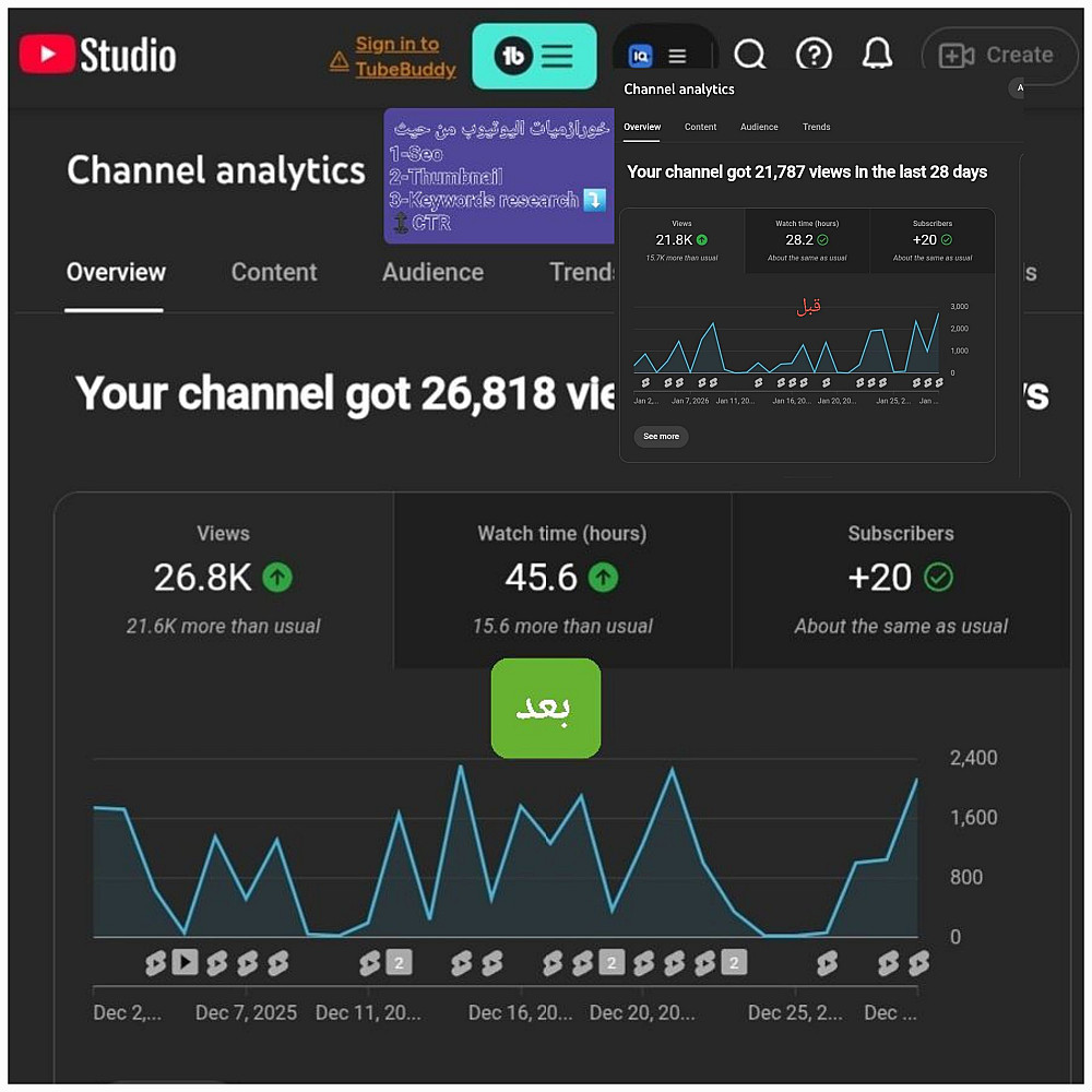 استخدام أدوات احترافية مثل (VidIQ) و (TubeBuddy) لتحليل المنافسين.