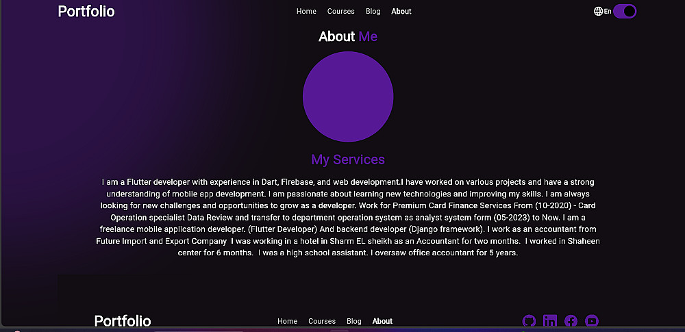 أقدّم لك تصميم وتطوير بورتفوليو برمجي حديث يساعدك على إبراز مهاراتك التقنية وزيادة فرصك في الحصول على عمل أو مشاريع حرة.