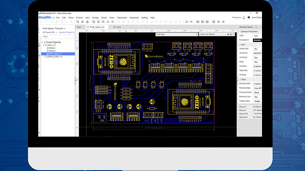 بصفتي مهندس إلكترونيات، لا أقوم فقط برسم خطوط؛ بل أصمم لك دائرة إلكترونية متكاملة تراعي معايير السلامة التقنية، وتقليل الضوضاء (Noise Reduction)، مع استغلال كامل لمميزات EasyEDA لتوفير ملفات دقيقة بنسبة 100% جاهزة للإرسال للمصنع بضغطة زر واحدة.