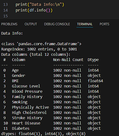 تحليل بيانات الصحة وبناء نموذج تنبؤ بالسكري باستخدام التعلم الآلي