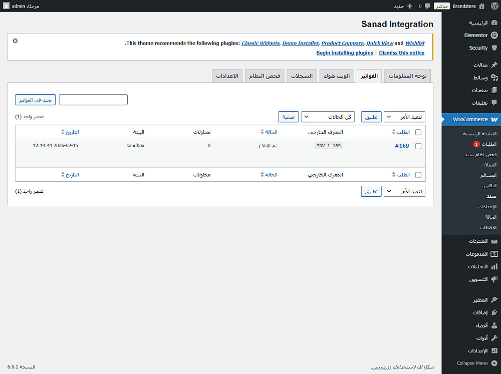 سند-نظام الفوترة الالكترونية(المرحلة 2) ووكومريس، متجر ريان