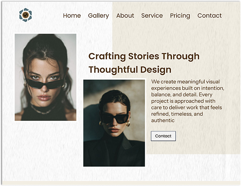 تصميم موقع بورتفوليو احترافي لمصور فوتوغرافي يهدف إلى عرض الأعمال بشكل جذاب ومنظم، مع التركيز على إبراز الهوية البصرية وتعزيز تجربة المستخدم.