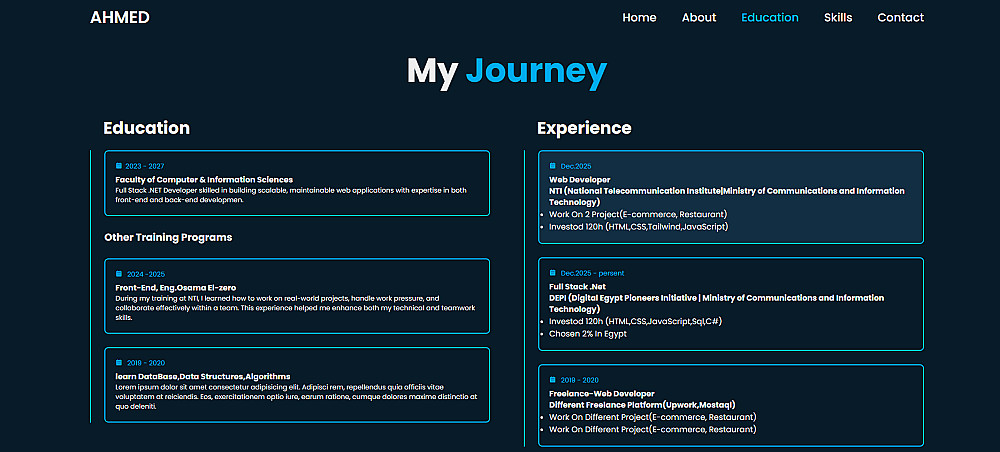 سواء كنت مطور، مصمم، طالب، أو فريلانسر — ستحصل على صفحة تعزز حضورك الرقمي وتترك انطباعًا قويًا لدى العملاء أو أصحاب العمل.