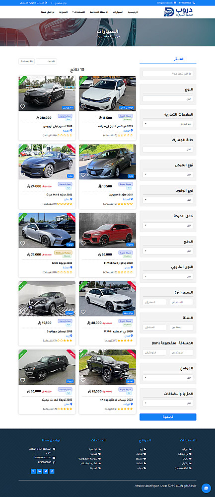 دوروب منصة عربية لإعلانات السيارات تُشغّل على استضافتك الخاصة (Self-Hosted)، مناسبة للمعارض والأسواق المحلية التي تحتاج موقعاً احترافياً مع لوحة تحكم كاملة لإدارة الإعلانات والبيانات المرجعية. الهدف: أن يجد العميل السيارة المناسبة بسرعة عبر تجربة بحث واضحة، وأن تتمكن الإدارة من إضافة وإدارة السيارات والمحتوى بدون تعقيد.