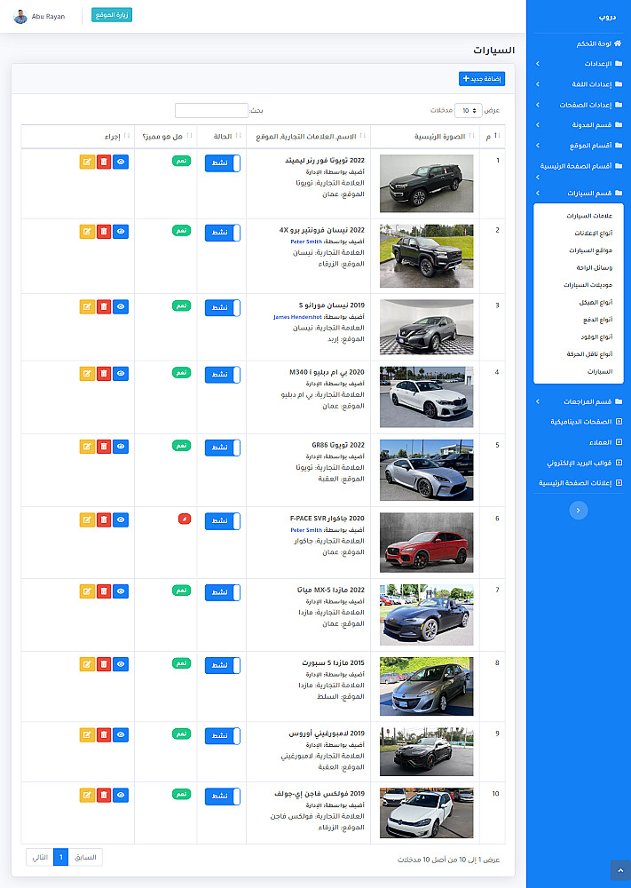 التحكم المطلق من قبل الإدارة في إضافة إعلانات السيارات، التحكم بظهورها، وتصنيفاتها.