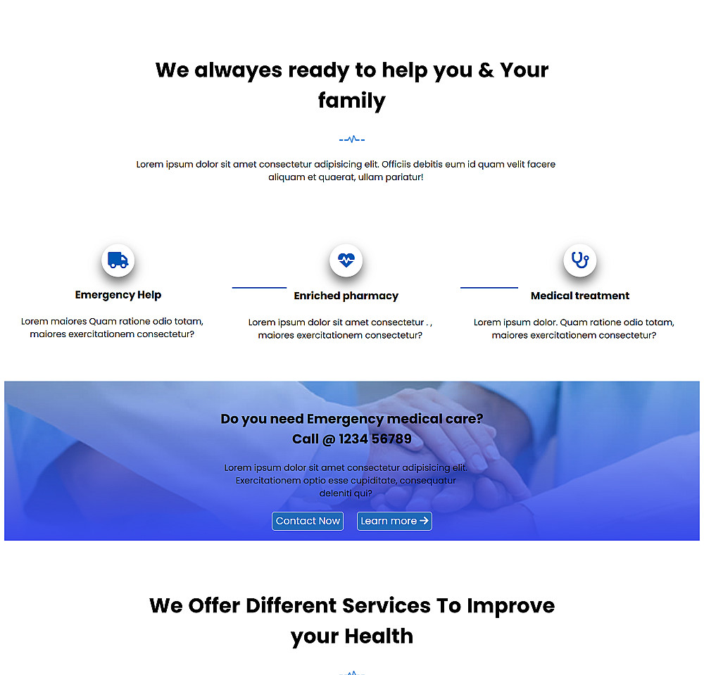 أقدم لك خدمة برمجة وتصميم صفحة هبوط (Landing Page) طبية احترافية بالكامل، مصممة بأحدث التقنيات لضمان السرعة والأداء العالي. الصفحة ستكون مخصصة لتعكس هوية المستشفى أو العيادة الخاصة بك.