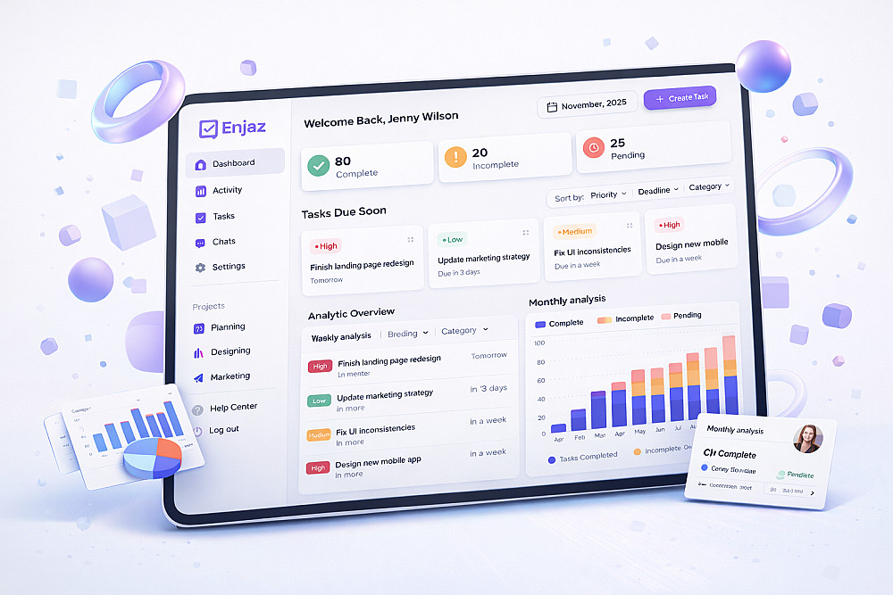 أقدّم تصميم Dashboard احترافي مبني على مبادئ UX الحديثة لضمان سهولة الفهم، وسرعة اتخاذ القرار، وتجربة استخدام عالية الجودة.