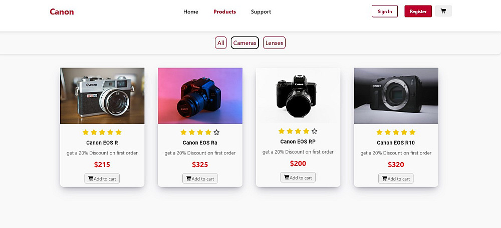 أهلاً بك، سأقوم بتصميم واجهة أمامية (Front-End) لمتجرك الإلكتروني بتصميم عصري وأنيق (مماثل لجودة مشروعي السابق لمتجر Canon).