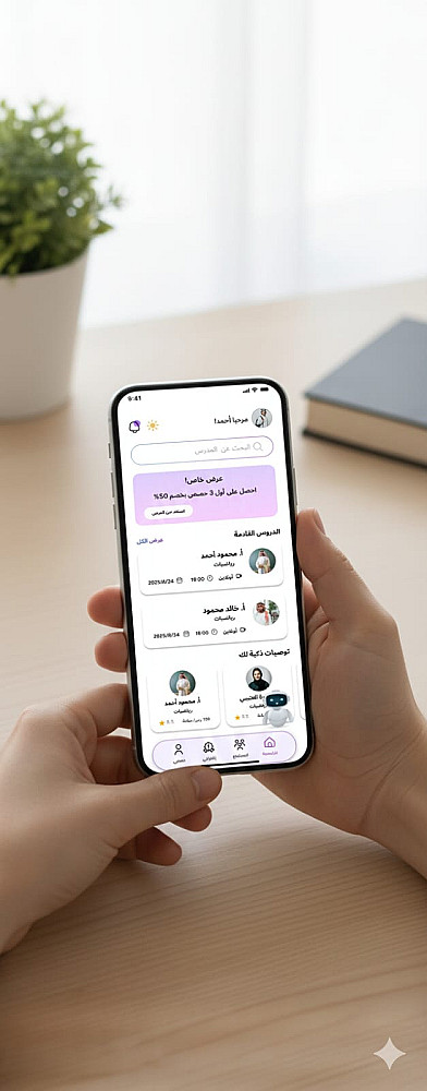 أقدم لك تصميم تطبيق موبايل كامل لمجال التعليم والدروس الخصوصية، مع تجربة مستخدم سلسة وواجهة جذابة (UI/UX) تساعد الطلاب والمعلمين على التفاعل بسهولة.
